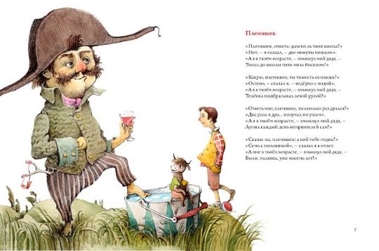 В этих стихах под дудку Силверстайна танцуют и Николай Некрасов, и Константин Аксаков, и другие классики. Например, читая стихотворение «Племяшек» вы наверняка вспомните отрывок из поэмы «Крестьянские дети», который учили в школе.